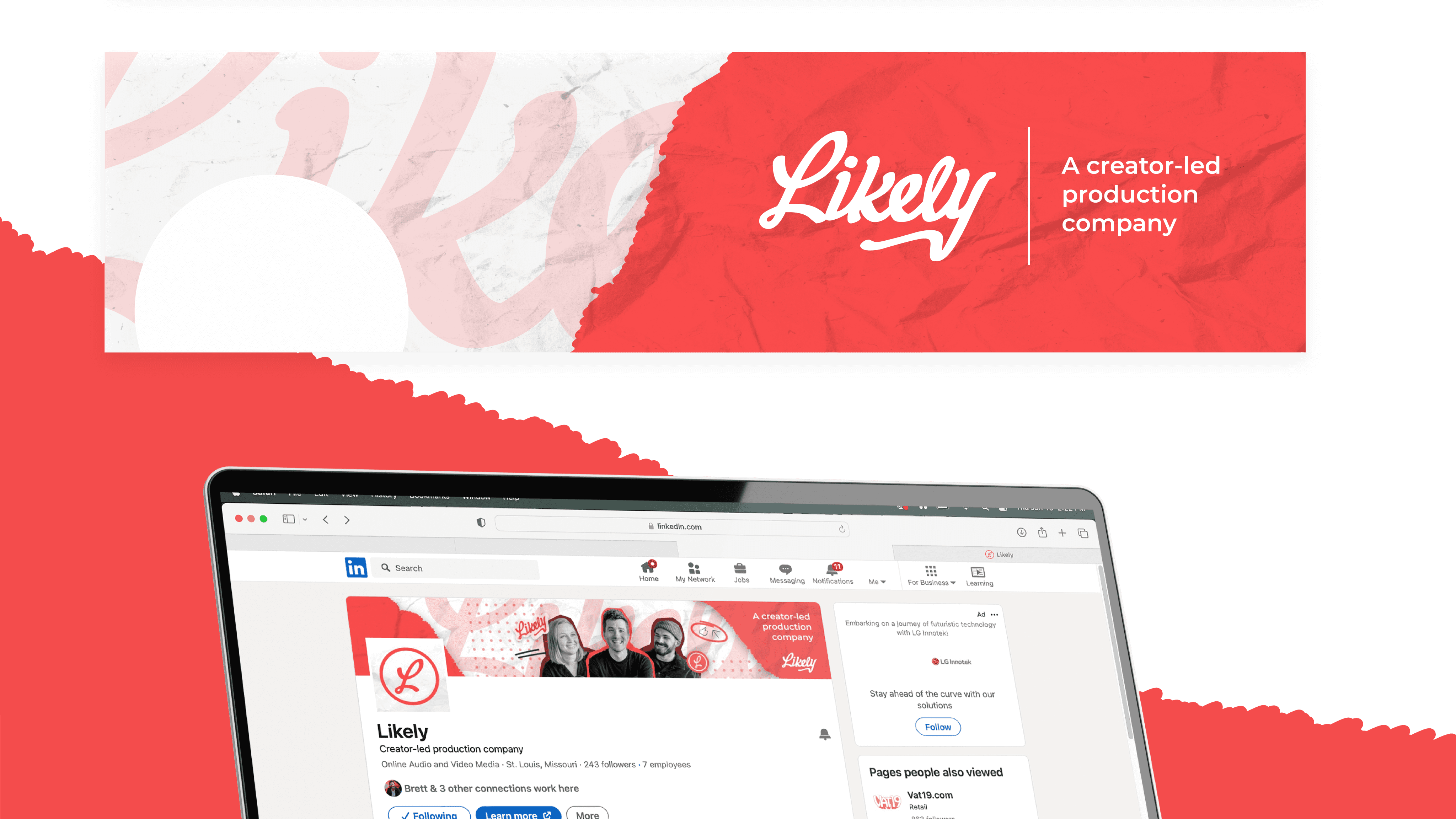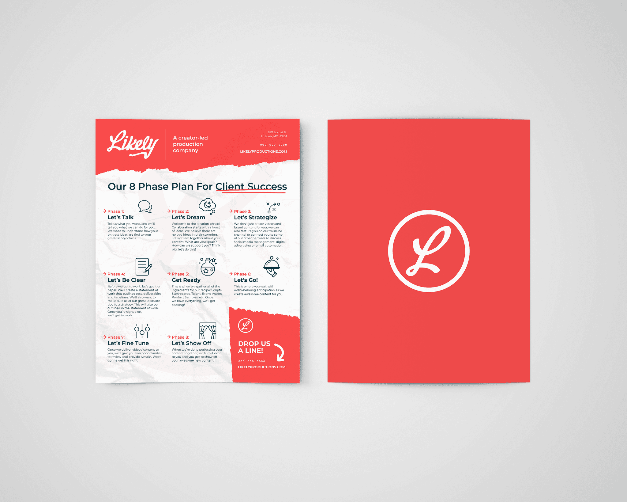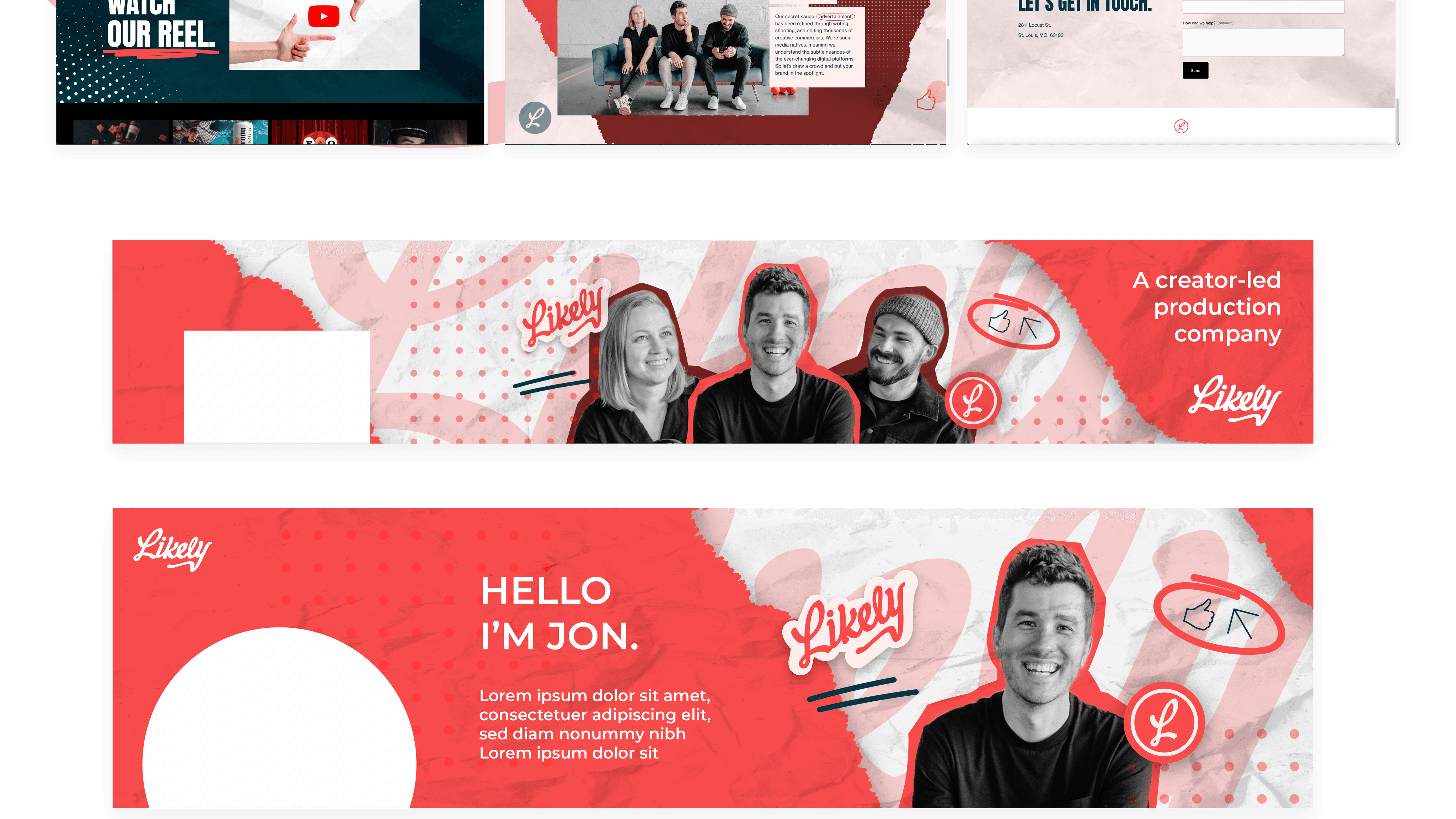 Redding Creative decided to update their brand, and change their name to 'Likely Productions'. I worked with their team to create the new visual identity system for Likely. Likely wanted to retain some of the visual elements from Redding Creative that they felt still fit with their brand, but create an identity that felt fresh, relevant, and like an appropriate transition from Redding creative.