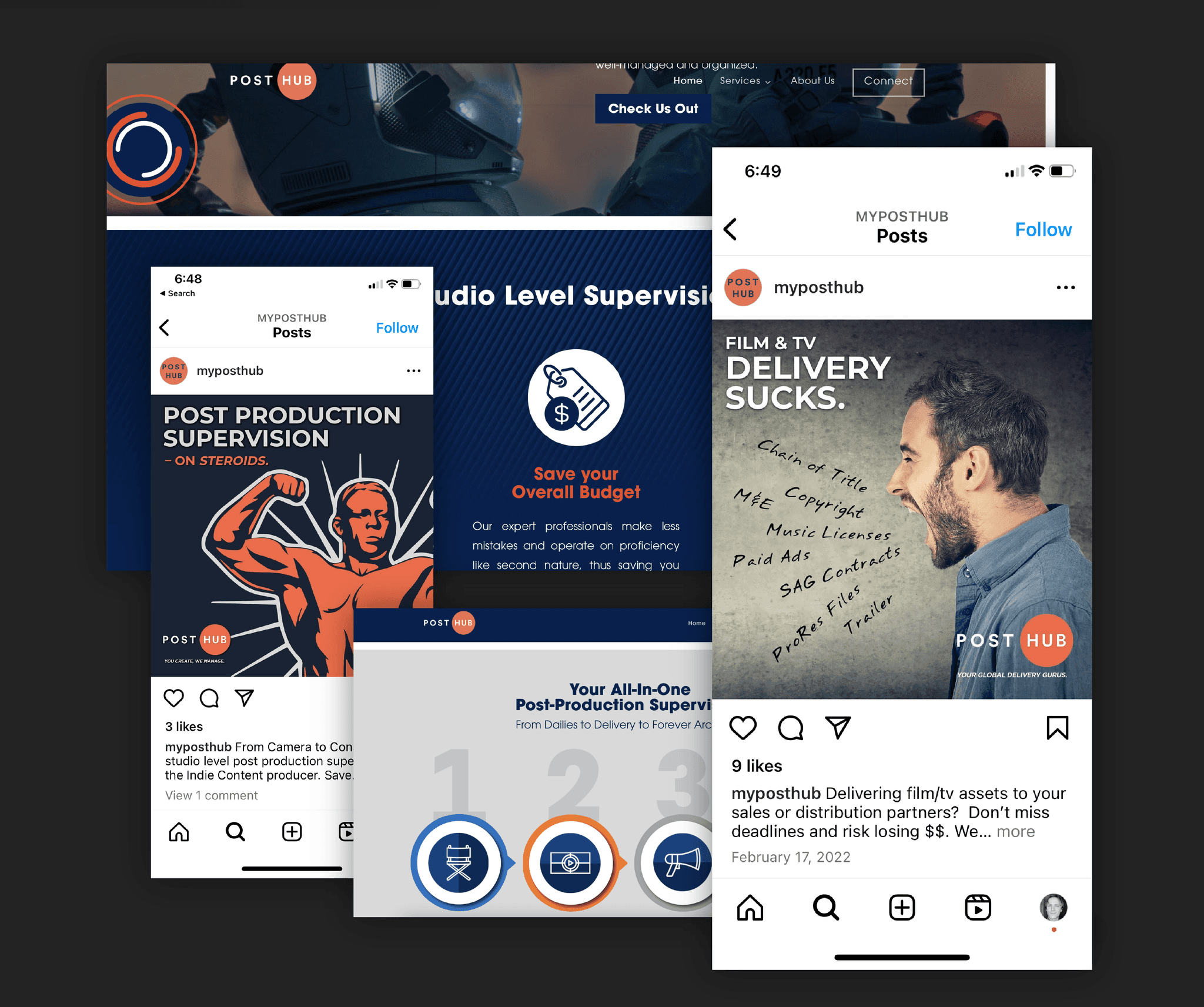 Post Hub, a post-production firm based in Los Angeles, faced issues with unclear and inconsistent brand messaging. As a result, they struggled with brand awareness overall, despite having significant involvement in a number of major LA-produced films. Posthub partnered with a local agency to help express their brand messaging more clearly and consistently through an ad campaign across print and digital channels. I was responsible for visually directing and designing the brand awareness campaign. The agency’s copywriting team developed concise, accurate language that aligned with their brand’s philosophy, and the Visual elements were taken from their existing brand guidelines, designed around that language.